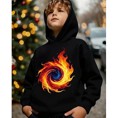 Chico 3D Graphic Geométrico de impresión en 3D Sudadera Manga Larga Primavera Otoño Moda Ropa de calle Niños 4-12 años Con Capucha Exterior Casual Diario Ajuste regular
