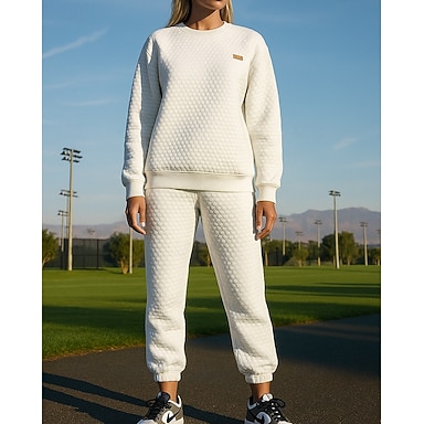 Mujer Chándal de 2 piezas Conjuntos de chándal Ropa deportiva Holgado Color sólido Trajes de Yoga Otoño Blanco Vocación Al Aire Libre Viaje Ligero Moda Manga Larga Deporte Ropa de Deporte