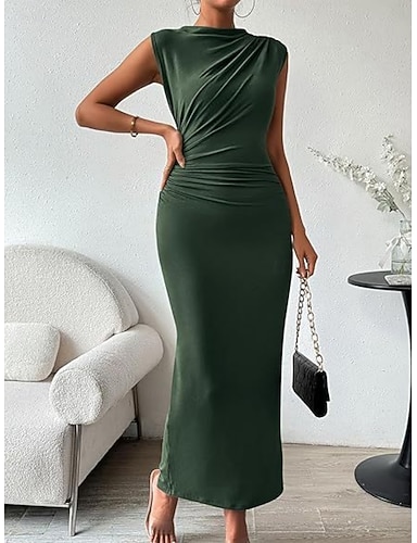 Mujer Vestido maxi Vestido tubo Vestido plisado Vestido de volante Elegante Fiesta Vestidos semi formales Fiesta de Noche Invitado a la boda Graduación Volante Color sólido Sin Mangas Cuello Barco