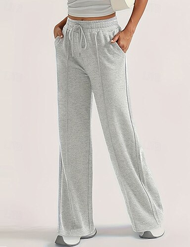 Mujer Perneras anchas pantalones Pantalones Casual Longitud total Cintura Media Plano Bolsillo Cintura elástica Confortable Al Aire Libre Cómodo Festivos Casual Diario Fin de semana Albaricoque Gris
