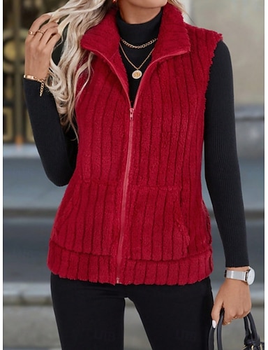 Mujer Chaleco Cómodo Transpirable Cremallera Bolsillo Casual Plano Vacaciones Calle Ropa Cotidiana Noche Cremallera Regular Cuello Vuelto Ajuste regular Sin Mangas Ropa de calle Negro Rojo Azul