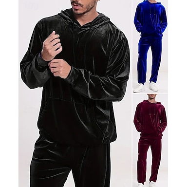 Hombre Tracksuit Conjunto de atuendo Conjunto de sudaderas con capucha Sudadera Exterior Diario Deportes Correa Bolsillo Plano Rojo tinto Negro Azul Real Poliéster Ropa de Deporte Moda Ropa de calle