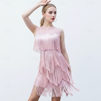 Baile Latino Vestido Borla Mujer Rendimiento Ropa Cotidiana Sin Mangas Licra