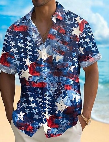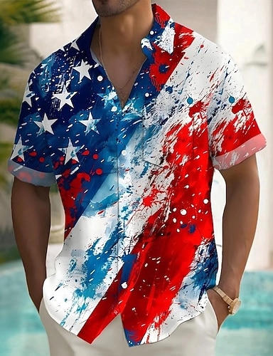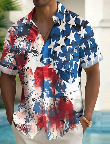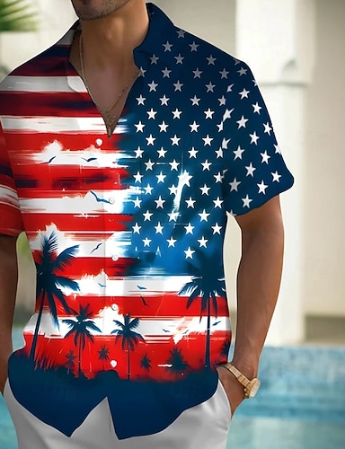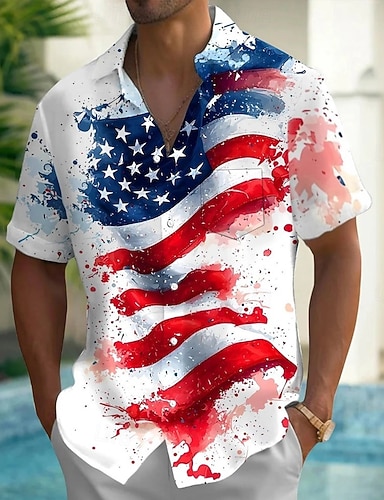 día de la independencia americana Chico 3D Graphic Bandera Camiseta Manga Corta Verano Primavera Moda Básico Niños 4-12 años Cuello Barco Exterior Casual Diario Ajuste regular