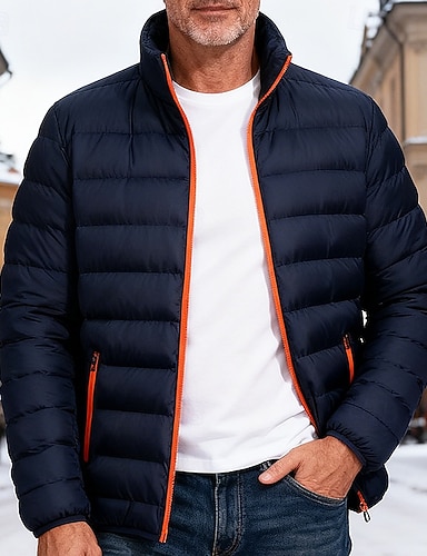 Hombre Abrigo de invierno Chaqueta acolchada Bolsillo Poliéster Vacaciones Ropa Cotidiana Cita Regular Moda Casual Cómodo Mantiene abrigado Otoño Invierno Color sólido/liso Negro Azul Oscuro Chaqueta