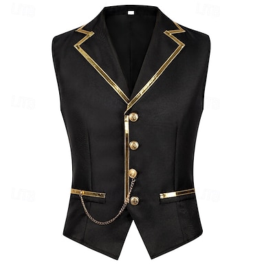 Gótico Victoriano Medieval Chaleco Sin Mangas Príncipe Vampiros Caballero Cremallera Disfraz Hombre Víspera de Todos los Santos Carnaval Mascarada Feria del Renacimiento LARP Fiesta temática retro