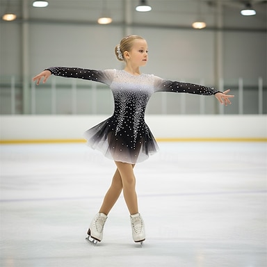 Trajes de patinaje artístico para adultos y niños, de malla de spandex negra, personalizados, para competición, entrenamiento, faldas con forma de diamantes de imitación para mujer, trajes de