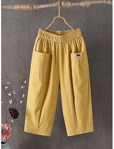 Mujer Pantalones Capri Algodón Compuesto Lino de algodón sintético Perneras anchas Vacaciones Moda Ropa de calle Medio corto Alta cintura Plano Bolsillo Cintura elástica Cómodo Transpirable Rígido