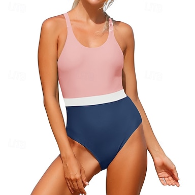Mujer Traje de baño Trajes de baño Una pieza Bloqueo de color Pierna breve Secado rápido Elástico Sin Mangas Bañadores Traje de baño Surf Playa Natación Verano