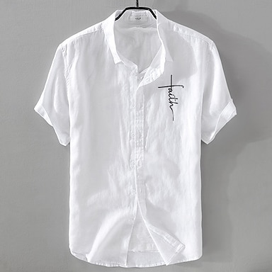 Hombre Camisa de lino Camisa casual Camisa de lino y algodón Abotonar la camisa Patrón Vacaciones Calle Negro Blanco Rosa Azul Marino Oscuro Manga Corta Diseño Verano Ropa Abotonar