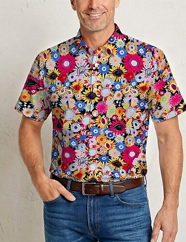 Retro Antiguo Años 70 Camisas Hippie Floral Margarita Disfraz Hombre Fiesta Ropa Cotidiana Desfile del orgullo Adulto Camisas