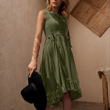Punk y gótico Renacimiento Steampunk Vestidos Bruja Chica gótica Color sólido Disfraz Mujer Fantasía Steampunk Noche de Walpurgis Víspera de Todos los Santos Carnaval Mascarada Casual Diario Adulto