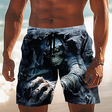 Hombre Cráneos La muerte Muerte Boxers de Natación Pantalones de Natación Pantalones de Surf Media cintura Retro Antiguo Estilo gótico oscuro Exterior Vacaciones Bolsillos laterales Forro de malla