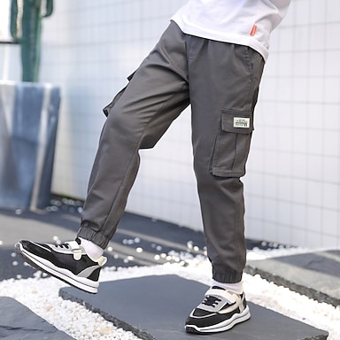 Niños Chico Pantalones cargo Pantalones Color sólido Suave Comfort Pantalones Exterior Algodón Moda Diario Negro Verde Ejército Caqui Cintura media