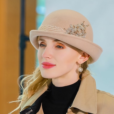 Sombreros, boina 100% lana, sombrero bombín/cloche, sombrero para fiesta de té, cóctel, elegante británico con lazo, tocado de color liso.
