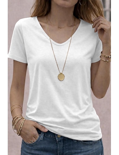 Mujer Talla grande Camiseta Tee Color sólido Elegante Casual Manga Corta Escote en Pico Tops regulares Diario Noche Fin de semana Negro Blanco Rosa claro Púrpula Claro Azul claro Verano Primavera