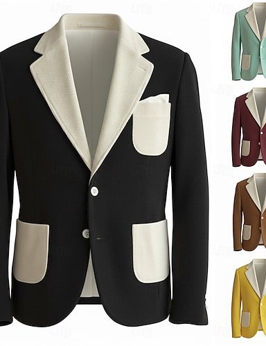 Hombre Chaqueta de Pana Cuello de muesca Feo Moda Casual A Rayas Retazos Color sólido Blazer Negro Amarillo Burdeos A Medida Dos botones de un solo pecho