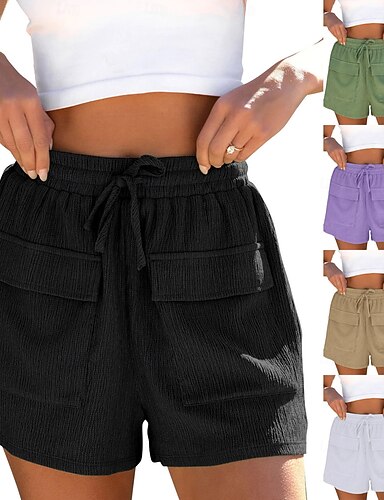 Mujer Pantalón Corto Cargo Chinos Pantalones cortos de verano Pantalones cortos de playa Vacaciones Moda Ropa de calle Corto Alta cintura Plano Correa Cintura elástica Múltiples bolsillos Comodidad