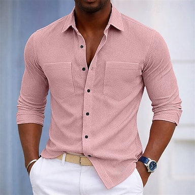 Hombre Camisa Textura Camisa casual Camisa de Pana Abotonar la camisa Azul Piscina Rosa Morado Marrón Azul Oscuro Manga Larga Plano Cuello Camisero Casual Diario Bolsillo delantero Ropa Elegante Moda