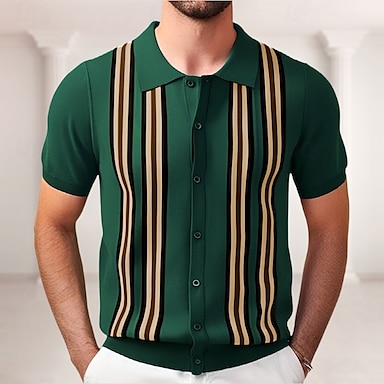 Hombre Polos con botones Camiseta de golf Casual Deportes Diseño Manga Corta Moda Básico Rayas Retazos Botones Verano Marrón Verde Trébol Albaricoque Polos con botones