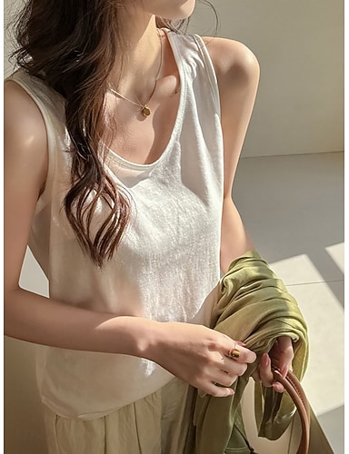 Mujer Camiseta Blusa Retazos Color sólido Moda Moderno Casual Sin Mangas Cuello Barco Tops regulares Diario Noche Fin de semana Negro Blanco Amarillo Rosa Albaricoque Verano Primavera