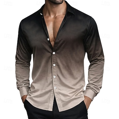 Hombre Camisa Camisa para Vestido Degradado Casual Diario Azul Piscina Morado Marrón Verde Trébol Manga Larga Escote Chino Verano Primavera Ropa Estampado