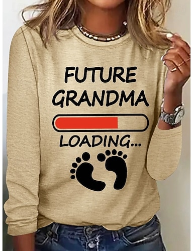 Año Nuevo Mujer Camiseta Estampado Graphic Letra Moda Elegante Casual Manga Larga Cuello Barco Tops regulares Diario Fin de semana Negro Rosa Rojo Rosa Brillante Verano Primavera Otoño