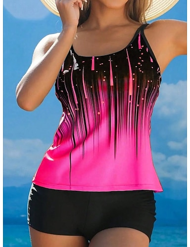 Mujer Bañadores Tankini Alta cintura Traje de baño Activo Tropical Ombre Escote en U Sin Mangas Trajes de baño