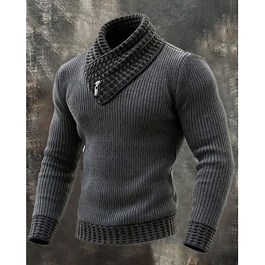 Hombre Pulóveres Suéter de punto Estriado Tejer Tops regulares De Punto Color sólido Cuello Alto Moda Ropa de calle Casual Ropa Cotidiana Ropa Otoño Otoño invierno Negro Rojo M L XL
