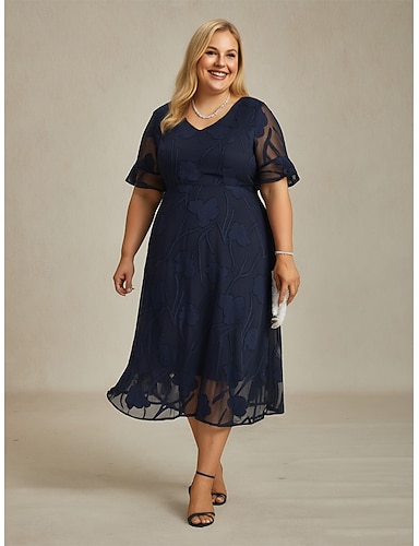 Mujer Vestido Midi Vestido de raso Vestido de una línea Elegante Mangas anchas Diario Playa Invitado a la boda Acordonado Ajuste regular Floral Media Manga Cuello Barco Azul Marino