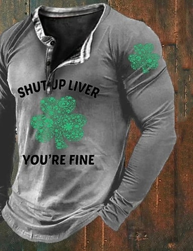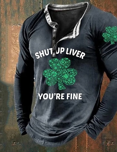 Camisa Henley de San Patricio para hombre camiseta gráfica de trébol bandera nacional ropa Henley impresión 3D diaria día de San Patricio de manga larga impresión moda diseñador