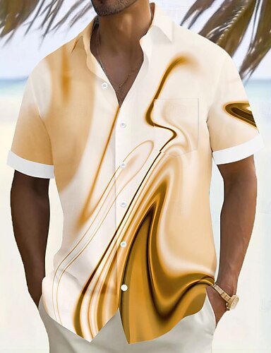 Hombre Degradado Olas Camisa Camisa de verano Abotonar la camisa Manga Corta Moda informal Exterior Vacaciones Uso Diario Verano Primavera Cuello Vuelto Impresión 3D camisas con cuello Un bolsillo