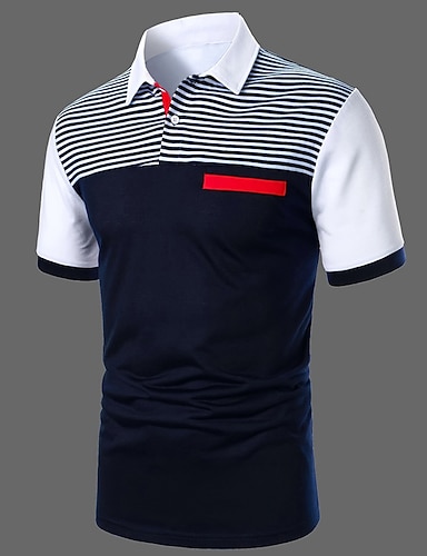 Hombre Polo de mezcla de algodón Camiseta de golf Casual Deportes Clásico Manga Corta Moda Fresco Bloque de color Bolsillo Botones Verano Primavera Primavera & Otoño Ajustado Gris oscuro Negro Blanco