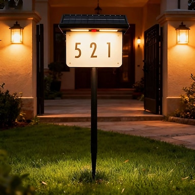 Lámpara solar para exteriores con placa de identificación, letreros digitales con números, se conecta al suelo, luz de pared impermeable, lámpara solar para porche exterior