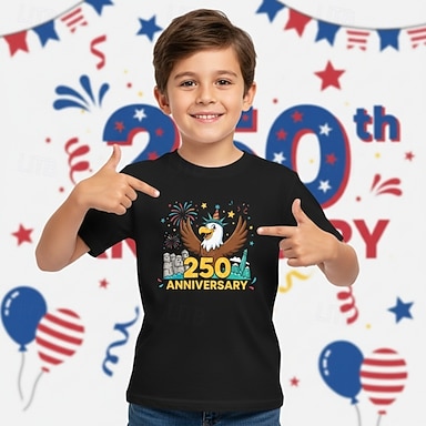 100% Algodón Niños Chico Negro Graphic Águila 250 aniversario Camiseta Blusa Cuello Barco Manga Corta Exterior Uso Diario Moda Ropa de calle Design Estampado Verano