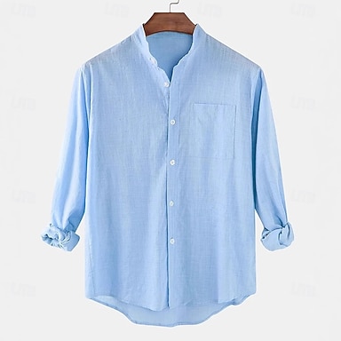 Hombre Camisa Camisa de lino Camisa de verano Ropa de playa Camisa con cuello mao Camisa de cuello abuelo Plano Casual Vacaciones Azul Piscina Negro Blanco Caqui Manga Larga Collar mandarín Verano
