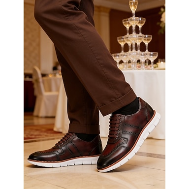 Zapatos de boda de piel auténtica marrón para hombre, zapatos cómodos y elegantes para invitados de boda.