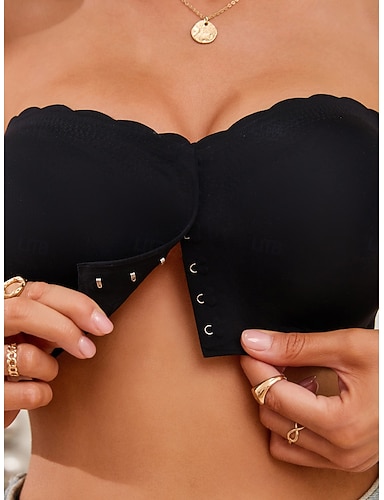 Sujetadores sin aros para mujer, sujetadores acolchados, sujetadores ajustables sin tirantes, copa 3/4, escote en V, transpirables, push up, invisibles, color puro, cierre frontal, para citas, día de