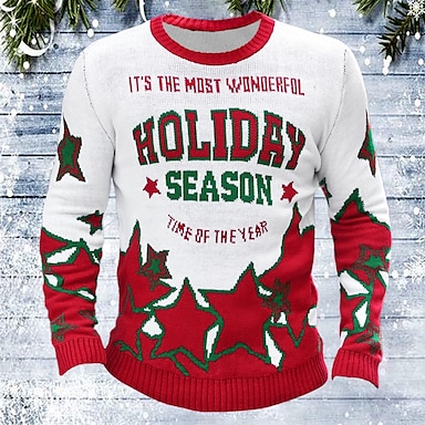 Hombre Jersey Jacquard Suéter navideño feo Pulóveres Suéter de punto Suéter informal Tejer Cuello redondo Con monograma Estrella Cuello Barco Navidad Prendas de punto Fiesta Navidad Ropa Invierno