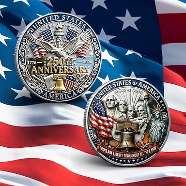 Moneda conmemorativa del 250.º aniversario de EE. UU. con majestuosos diseños de águilas y la marca del 250 aniversario que celebra la libertad estadounidense. Artículo coleccionable.