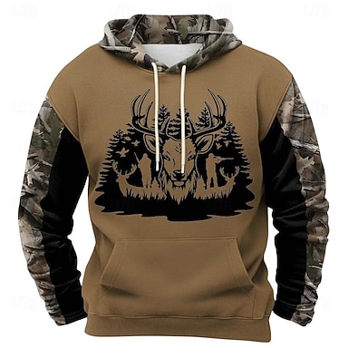 Hombre camuflaje Venados Sudaderas Moda Diario vaquero occidental Manga Larga Con Capucha Vacaciones Caza Negro Marrón Caqui Correa Cremallera Otoño Invierno Diseñador S M L XL XXL XXXL