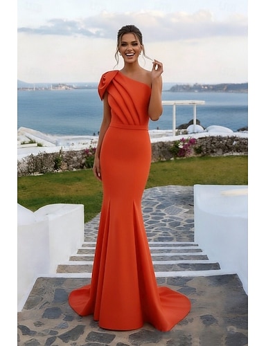 Corte Trompeta Sirena Funda Columna Cola de Corte Trajes de gala Vestidos de noche Corte Cenicienta Vestimenta formal Elegante Reluciente Estilo de Celebridad Sin Mangas Un Hombro Fiesta de jardin