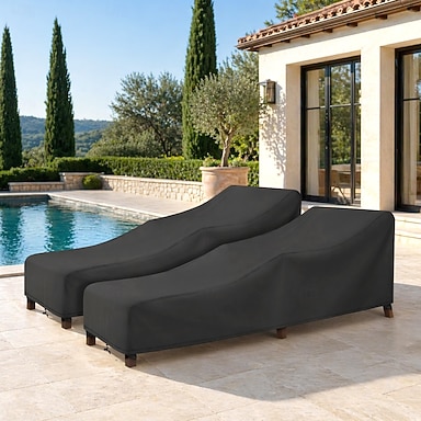 Funda impermeable para tumbona de patio, paquete de 2 fundas para tumbonas de piscina, cojines apilables y muebles de exterior, 80" x 30" x 26" de alto, color negro.