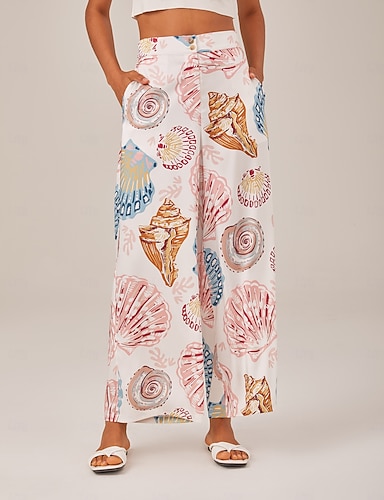 Mujer Camisa con botones Camisa casual Oceano Concha Criaturas del mar Casual Mangas de obispo Rosa Botones Gráfico Manga Larga Elegante Vacaciones Casual Cuello Camisero Verano Primavera Otoño