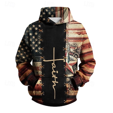 Hombre Bandera estadounidense Fe Sudadera Moda Diario Casual retro de la vendimia Con Capucha Vacaciones Fiesta Ropa de calle Festival Azul Piscina Negro Caqui Estampado Otoño Invierno Diseñador S M