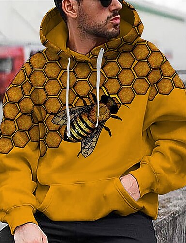 Hombre Abeja Estampados Sudadera Sudaderas Estampado 3D Casual Manga Larga Con Capucha Diario Deportes Amarillo Estampado Diseñador S M L XL XXL 3XL