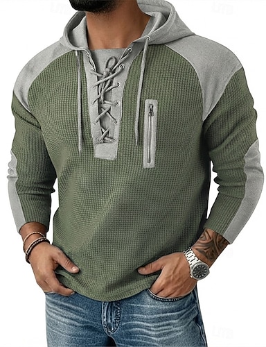 Hombre Camiseta con diseño de gofre Camiseta Camisa henley gofrada Manga Larga Con Capucha cuello con cordones Otoño Otoño invierno Color sólido Con Texturas Tradicional / Retro Chaqueta con capucha