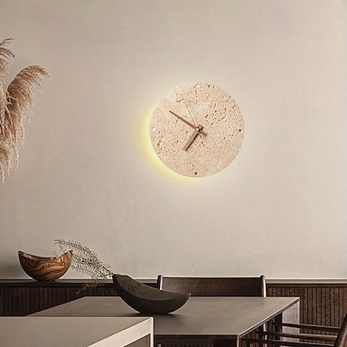 Aplique de pared LED moderno con forma de reloj, redondo, de travertino amarillo, lámpara de pared de piedra natural Wabi Sabi con manecilla de reloj para sala de estar de estilo rústico, dormitorio