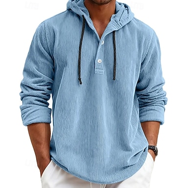 Hombre Sudadera Pana Sudadera Con Capucha Pull-over Sudadera con capucha y botones Negro Verde Ejército Azul Marino Caqui Gris Diseño Plano Retazos Deporte Casual Diario Poliéster Ropa de calle