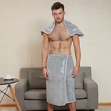 Toalla de baño para hombre, usable y envolvente, suave y absorbente, tamaño extra grande, estilo bata de baño, toalla corta para uso doméstico